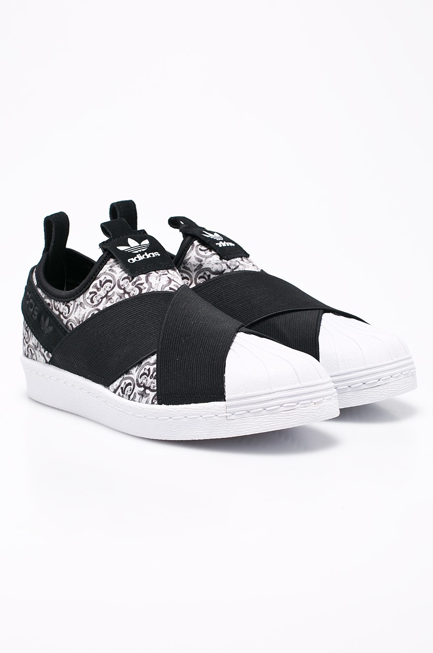 Adidas tocmai a lansat ultimul modelul slip-on, fără siret sau alt mecanism de inchidere. Vârful de cauciuc este păstrat, adăugându-se în partea inferioară benzi elastice uni în formă de X.