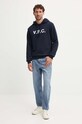 A.P.C. hanorac de bumbac hoodie standard grand vpc GOTS culoarea albastru marin, cu glugă, cu imprimeu, COHBN.M27908