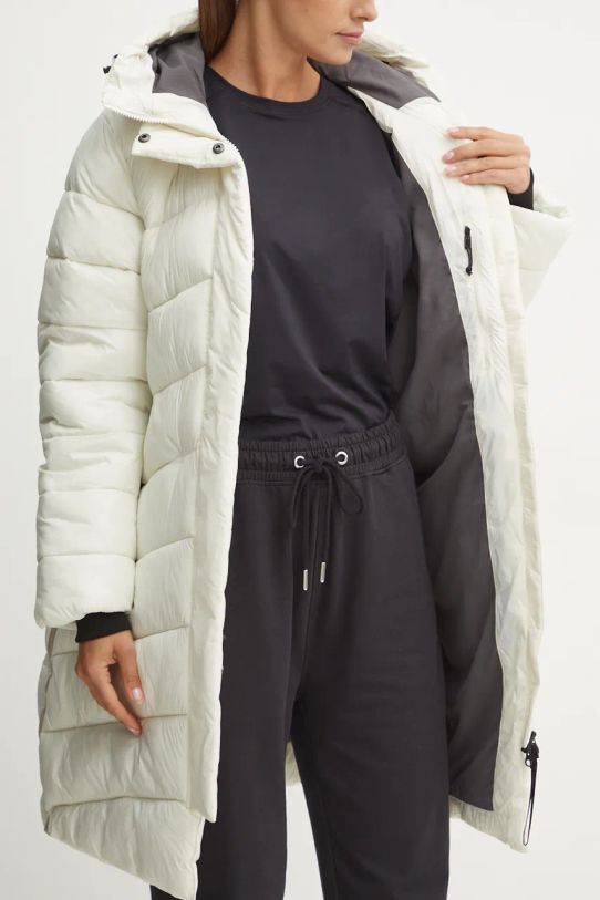 - Gulerul ridicat și gluga fixă oferă protecție suplimentară împotriva frigului.