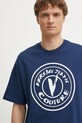 Versace Jeans Couture tricou din bumbac barbati, culoarea albastru marin, cu imprimeu, 78GAHE08 CJ00E